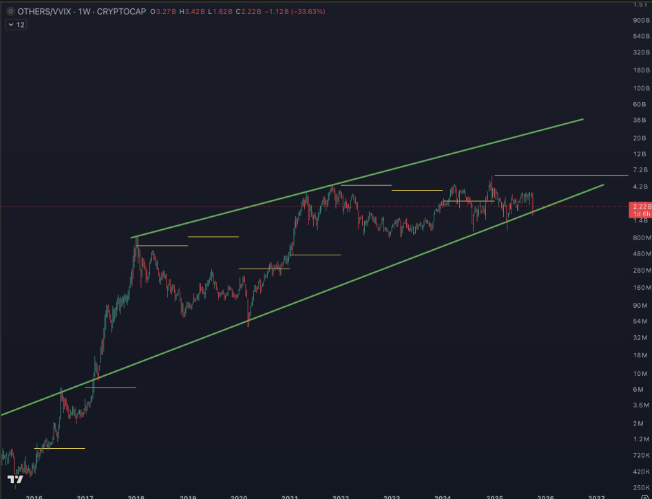 #Altcoins The same signals before Altseason 2017 and 2021 are occurring right now.One of the best metrics I used to forecast the Alts rally is Others vs $BTC pic.twitter.com/38hgAnpy2w— Mikybull 🐂Crypto (@MikybullCrypto) October 20, 2025