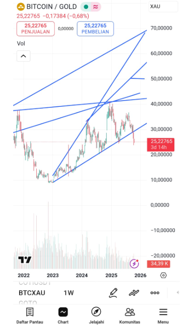 Kayaknya lagi bearish kalau dilihat dari chart BTC/XAU